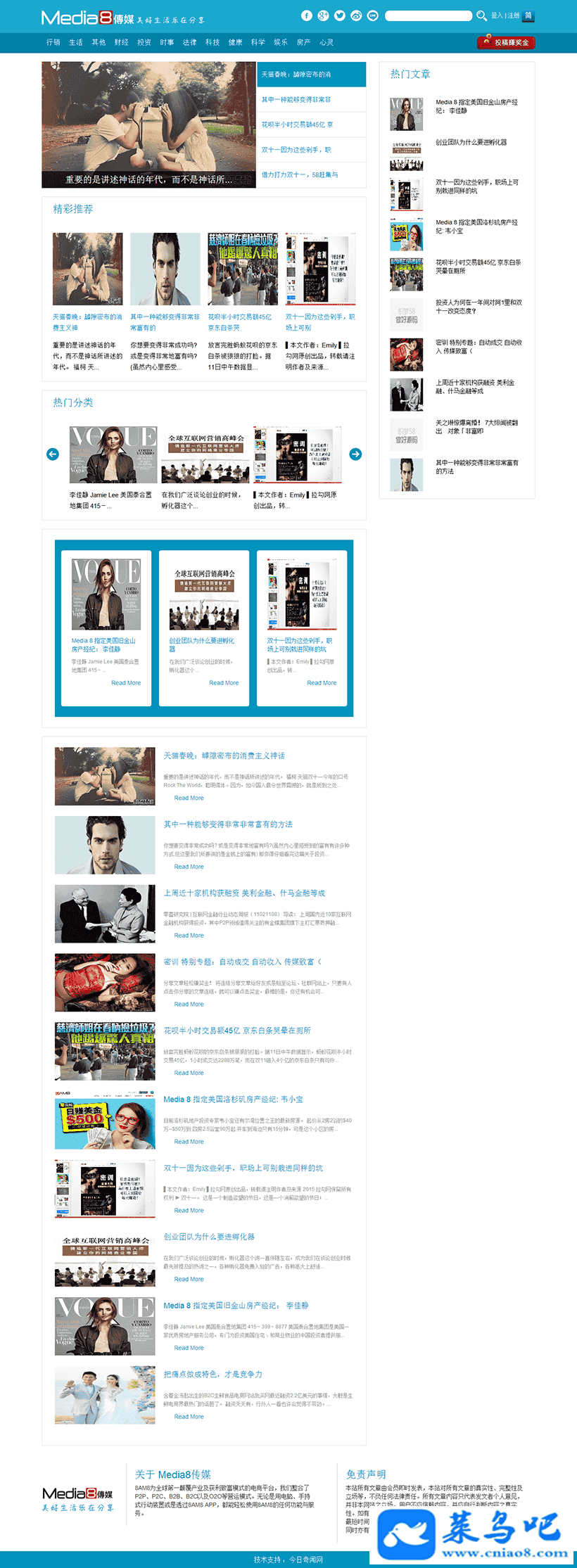今天推送的是织梦DEDECMS大气娱乐蓝色调资讯文章网站模板,是一个dede的大气娱乐资讯模板。仿的国外知名网站media8,页面大气有特色。