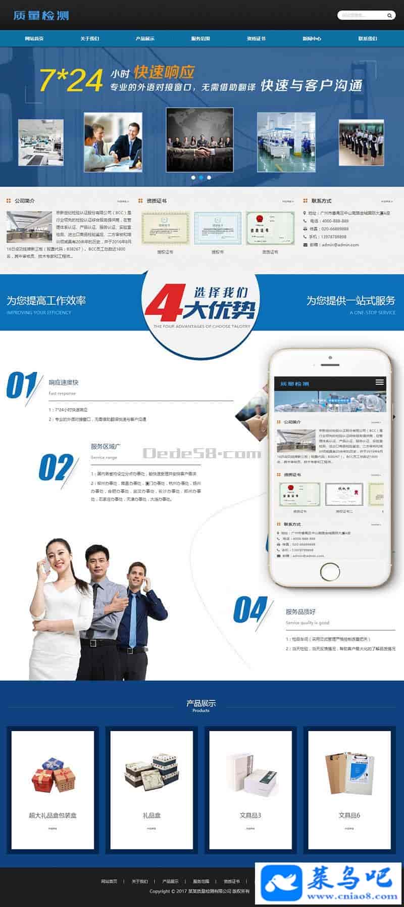响应式食品包装类网站源码|HTML5自适应质量检测类网站织梦模板(自适应手机版)