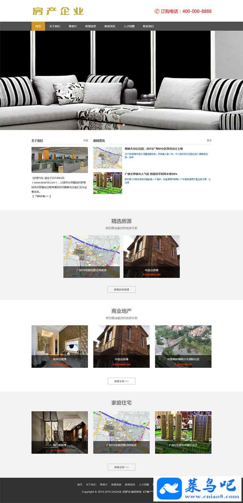 房地产企业代理公司网站源码|响应式dedecms织梦模板(自适应手机版)