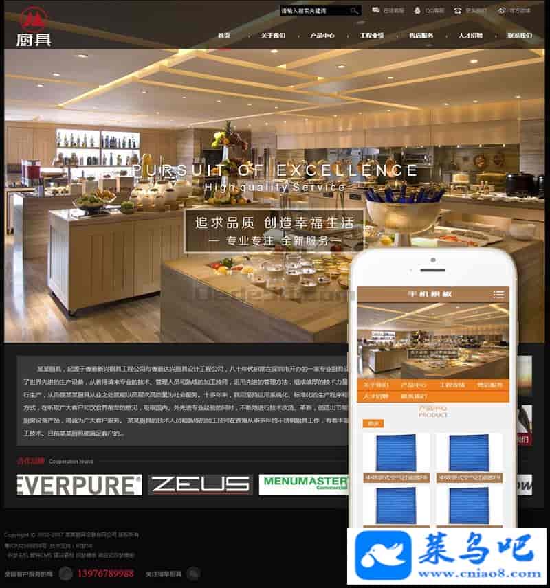 织梦最新内核开发的模板,该模板属于企业通用类、厨房设备类等设备类企业都可使用,
