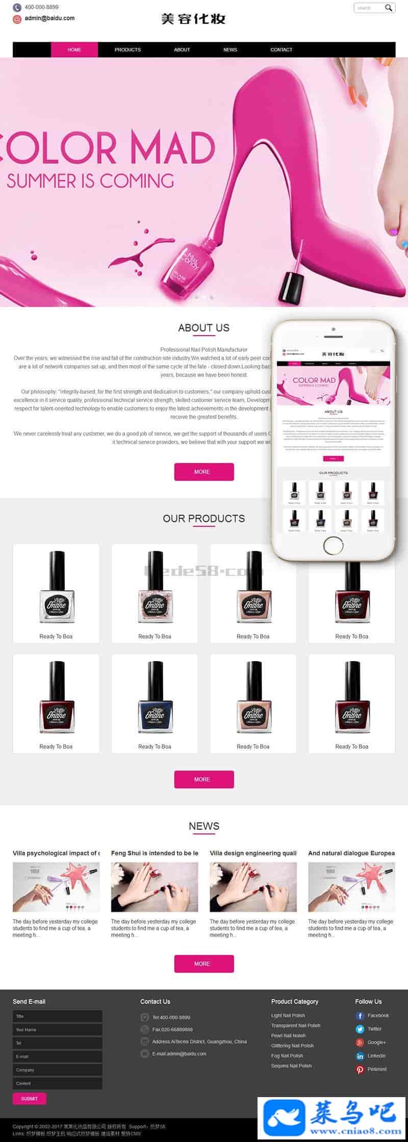 织梦最新内核开发的模板,该模板属于响应式自适应、外贸化妆美容产品类企业使用,一款适用性很强的模板,基本可以适合各行业的企业网站!