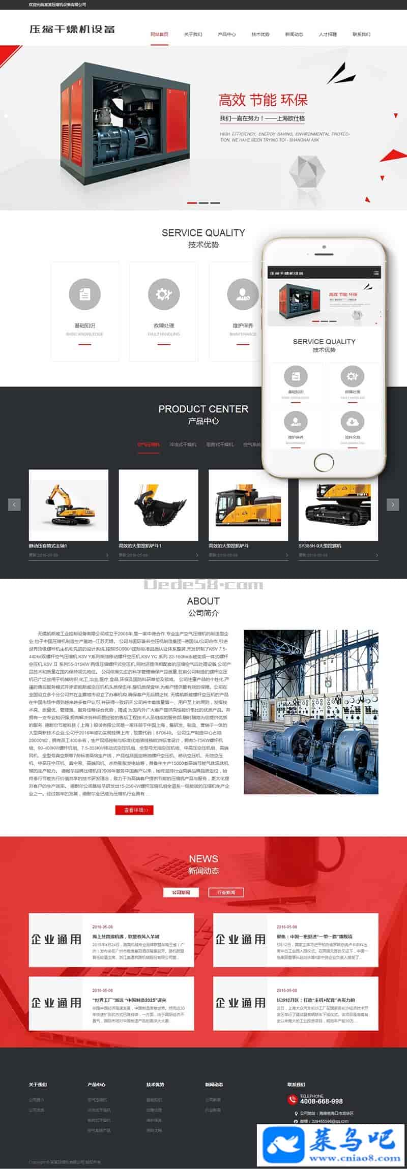织梦最新内核开发的模板,该模板属于响应式自适应、空气压缩机、冷冻式干燥机等机械设备类企业使用,一款适用性很强的模板,基本可以适合各行业的企业网站!
