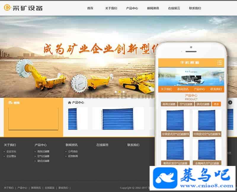 织梦最新内核开发的模板,该模板属于企业通用类、煤矿采矿挖掘设备类等设备类企业都可使用,