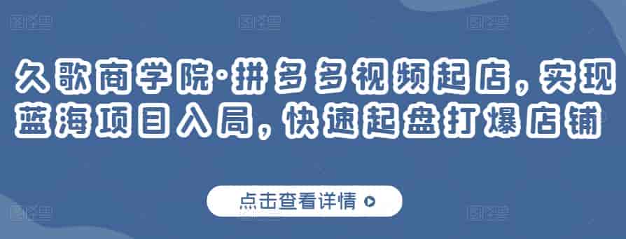 课程来久歌商学院的拼多多视频起店(蓝海项目),价值299元。带你了解视频带货前景及落地方案,实现蓝海项目入局,快速起盘,打爆店铺。