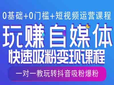 0基础+0门槛+短视频运营课程,玩赚自媒体快速吸粉变现课程,一对一教玩转抖音吸粉爆粉
