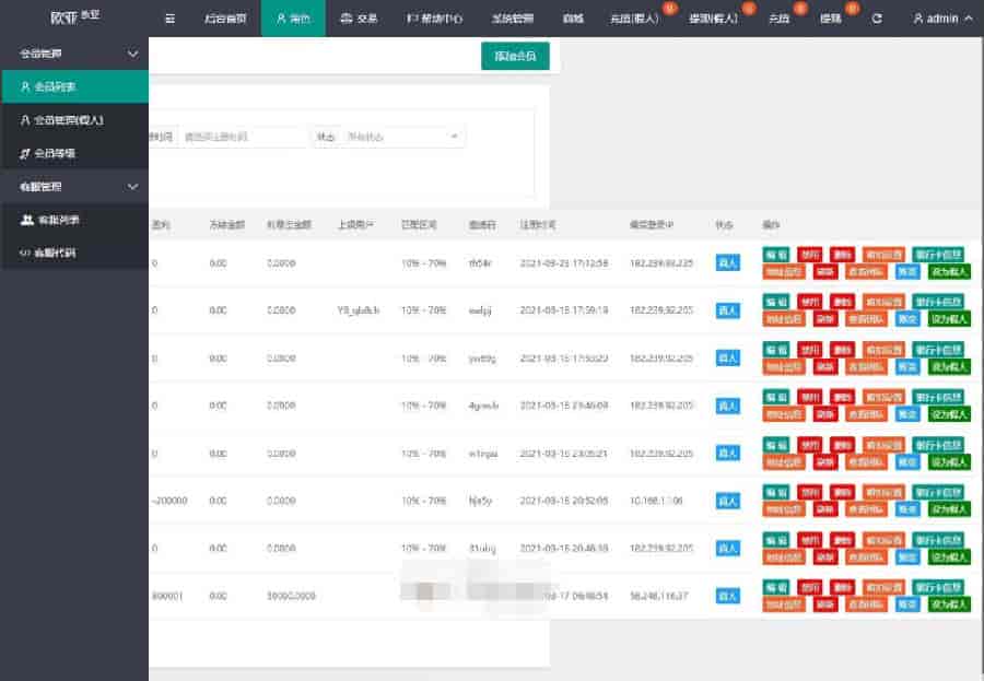 如增加订单、充值、提现假人管理;增加短信开关,增加短信宝、阿里云、云之讯短信接口;增加商品匹配区间设置;增加后台会员暗扣功能等。萝卜白菜各有所爱,需要的拿去研究学习。还是那句话在国家相关法律法规范围内并经过国家相关部门的授权许可,禁止用于一切非法行为。使用用途仅限于测试、实验、研究为目的,禁止用于一切商业运营,本团队不承担使用者在使用过程中的任何违法行为负责。
