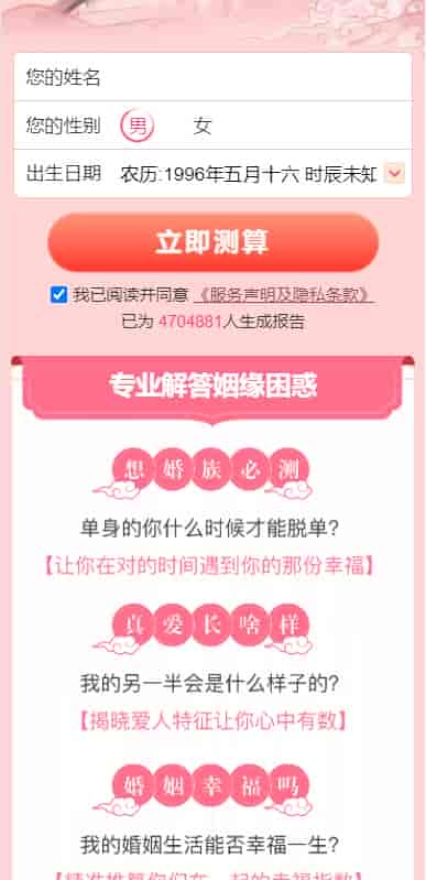 安装本源码后只要有人在线测算,就可以获得收入哦。是目前市面上最火的变现利器。