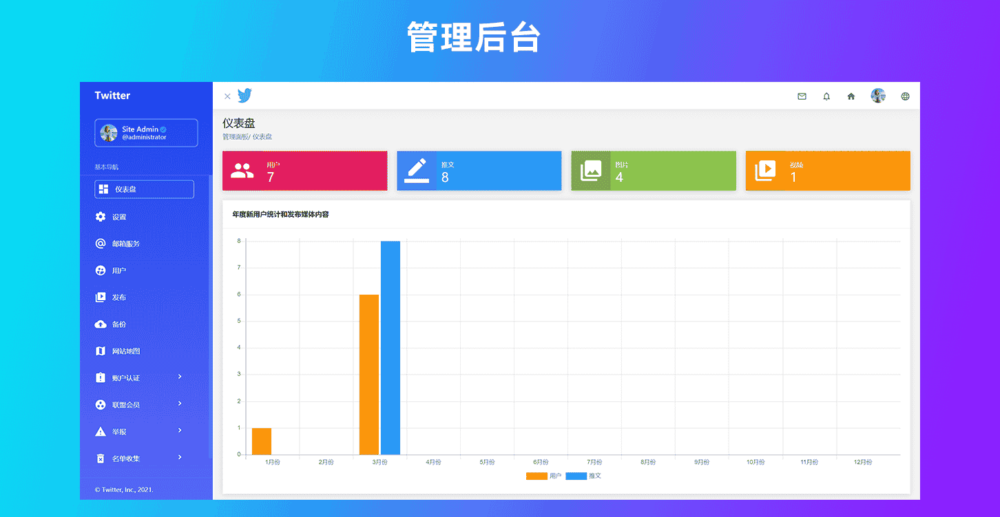 这是一款类似于Twitter网站的源代码。利用原代码,你可以快速搭建自己的社交网络平台。程序语言是PHP。数据库采用Mysql。与此同时系统带有注册,评论,转发等功能。注册用户可以分享他们的图片视频,或者创建投票的。同时系统自带ffmpeg功能上传视频会自动获取封面。还自带域名解析功;分享网址会抓取网站的描述和标题。配合后台管理面板,你可以快速设置所有的一切