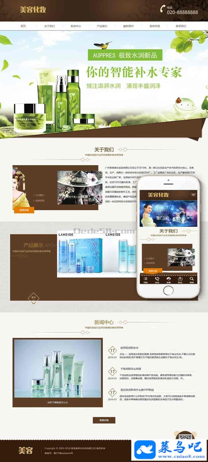 织梦最新内核开发的模板,该模板属于企业通用类、化妆品、香水、美容类企业都可使用,