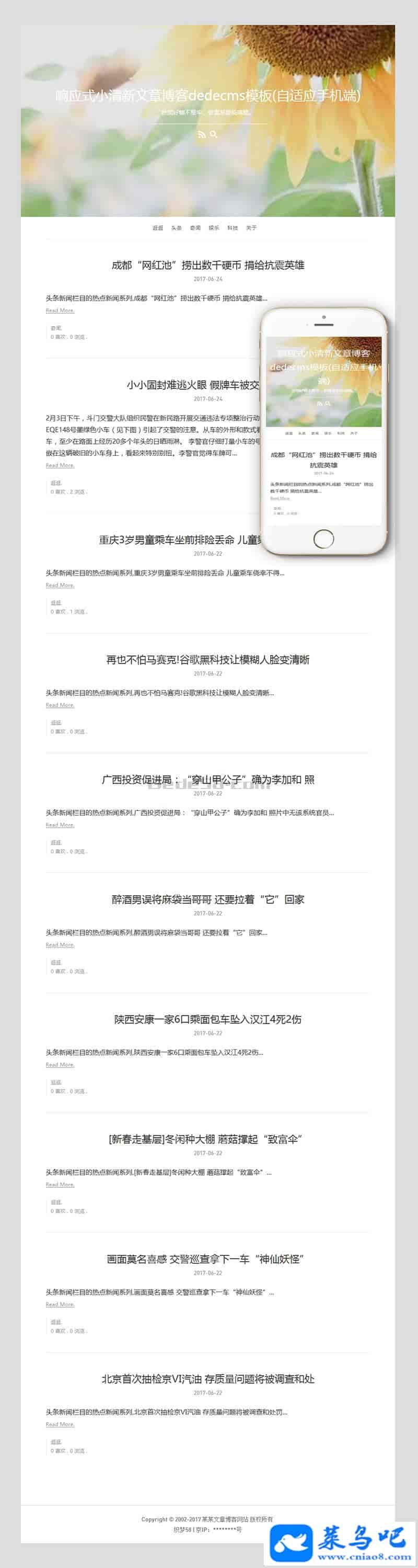响应式小清新文章博客dedecms模板(自适应手机端)+利于SEO优化