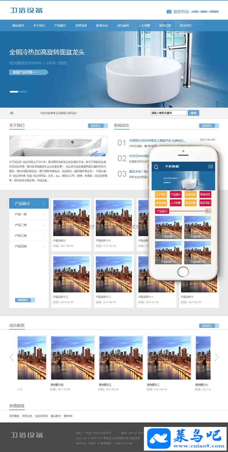 织梦最新内核开发的模板,该模板属于企业通用类、卫浴、瓷器类企业都可使用,