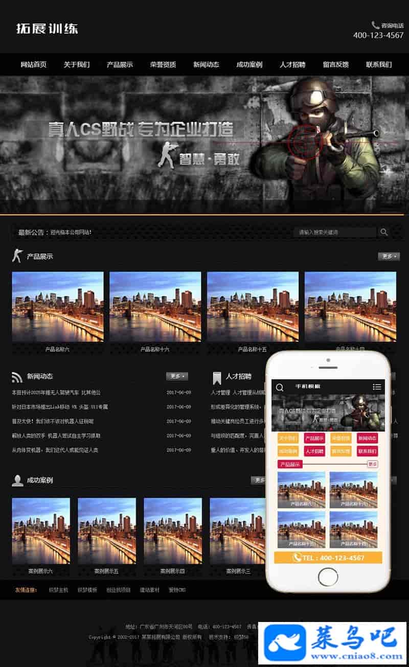 拓展真人cs野战训练类网站织梦模板(带手机端)+PC+移动端+利于SEO优化
