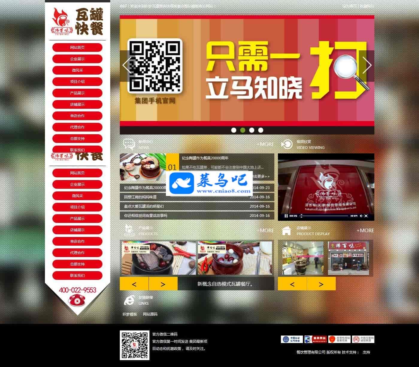 模板名称:快餐、美食店整站源码 瓦罐营养快餐类食店网站源码下载 dedecms内核