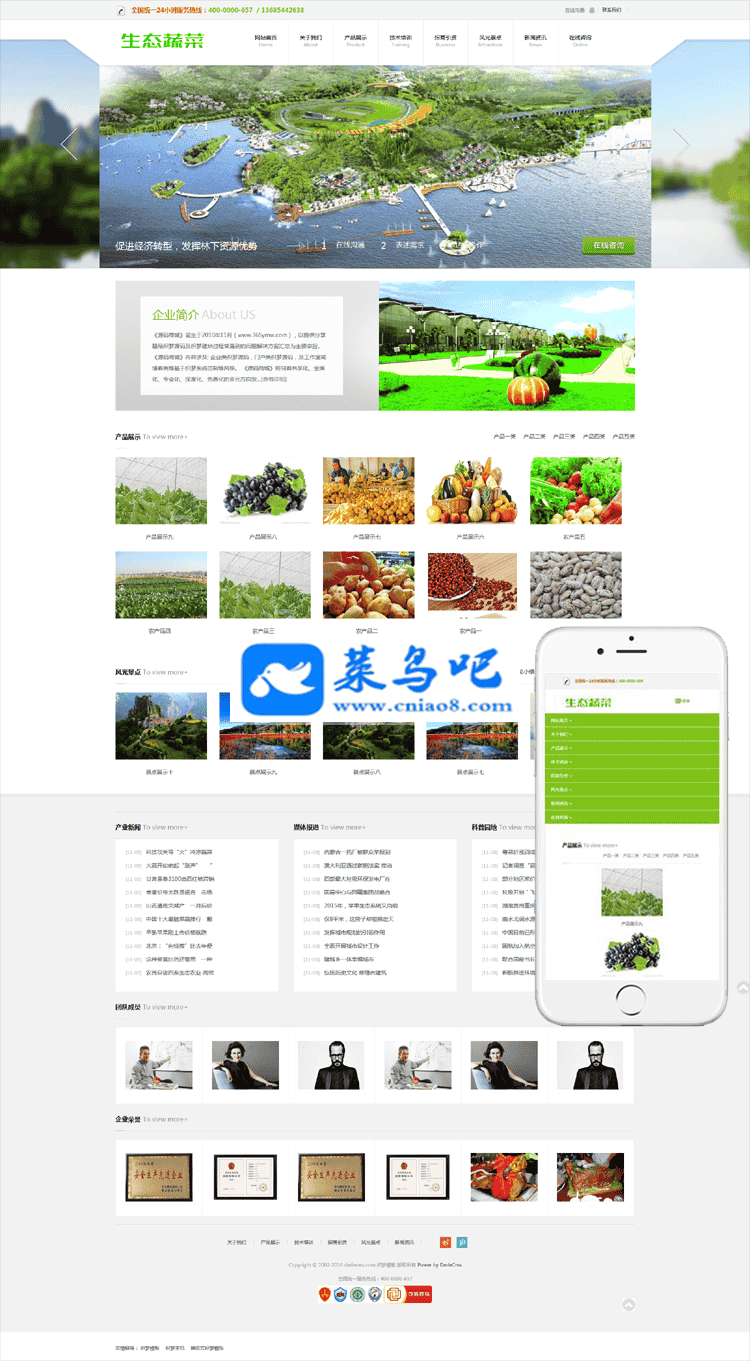 模板名称:最新大气响应式生态蔬菜类整站源码 企业通用展示类网站源码下载 (自适应手机端) dedecms内核
