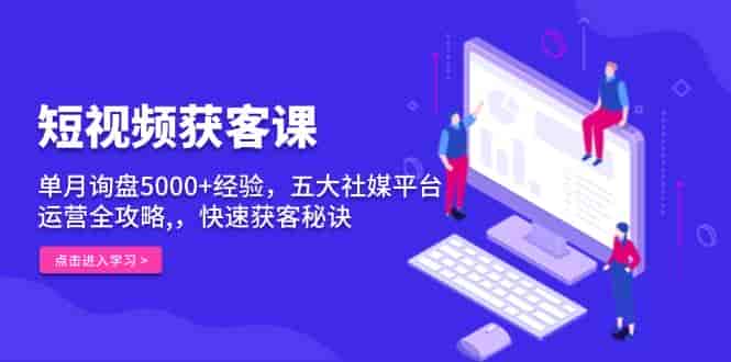 短视频获客课,单月询盘5000+经验,五大社媒平台运营全攻略,,快速获客…