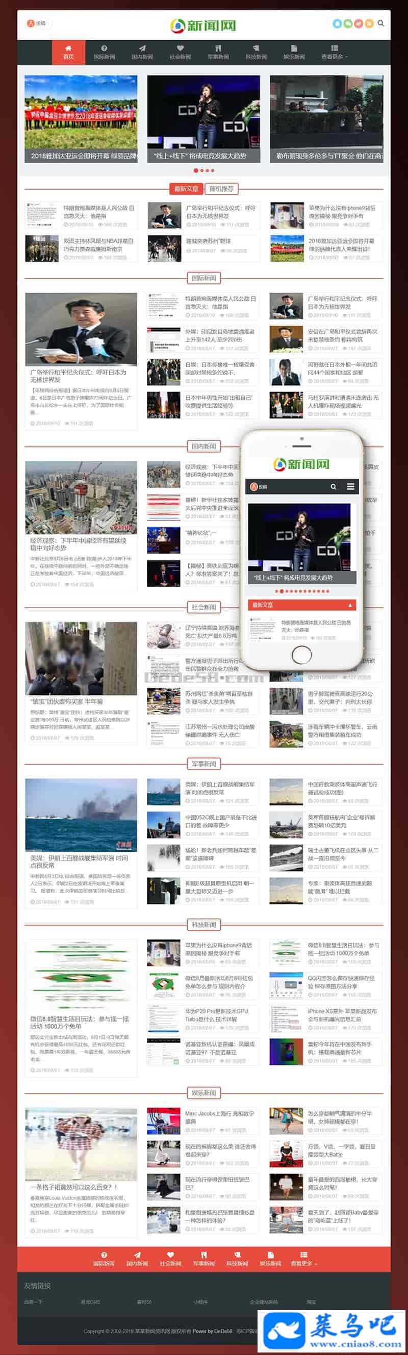页面简洁简单,容易管理,DEDE内核都可以使用;附带测试数据!