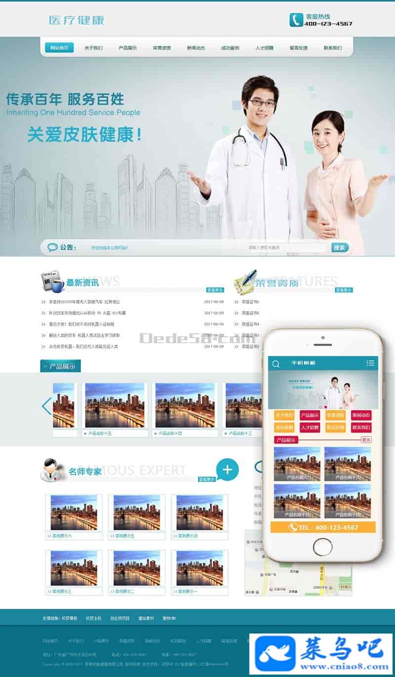 医疗皮肤健康类网站织梦模板(带手机端)+PC+移动端+利于SEO优化