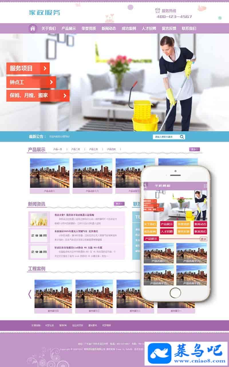 织梦最新内核开发的模板,该模板属于企业通用类、家政服务、保姆、月嫂、搬家类企业都可使用,