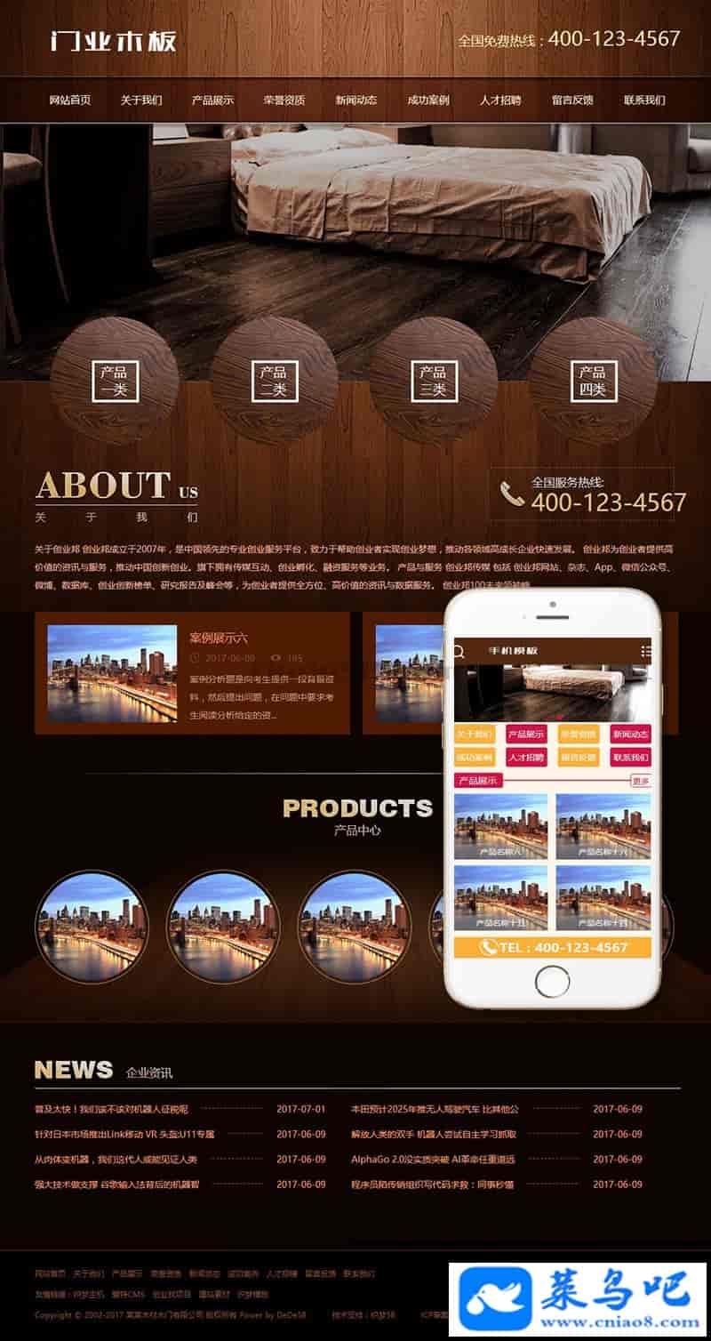 木材门业木板类网站织梦模板(带手机端)+PC+移动端+利于SEO优化