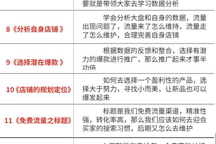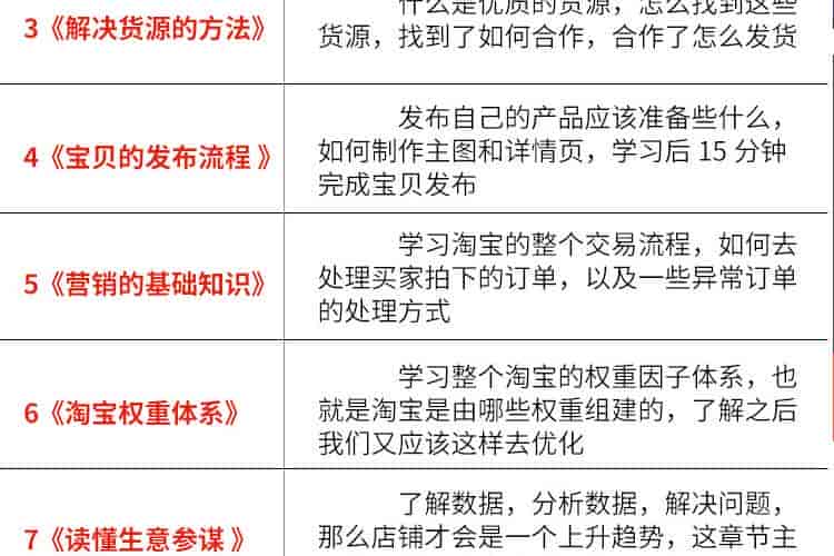 本淘宝开店教程是2018年全新升级版教程,全是实操技巧,打开后台一步一步教大家操作,针对开店、进阶、数据、推广,全方面进行讲解,如果你对教程不满意,服务不满意,学习不满意,没有教会大家任何东西,课后提出不懂问题,在学习过程中要认真。