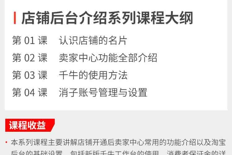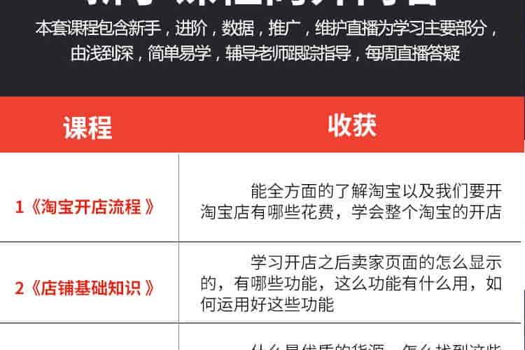 本套2018新手我要淘宝开店教程包含:新手、进阶、数据、推广、维护直播为学习主要部分,由浅到深,简单易学。