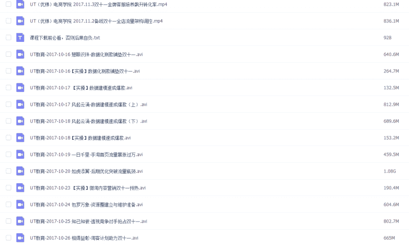UT电商学院VIP内训课程 淘宝天猫运营视频教程,共97G