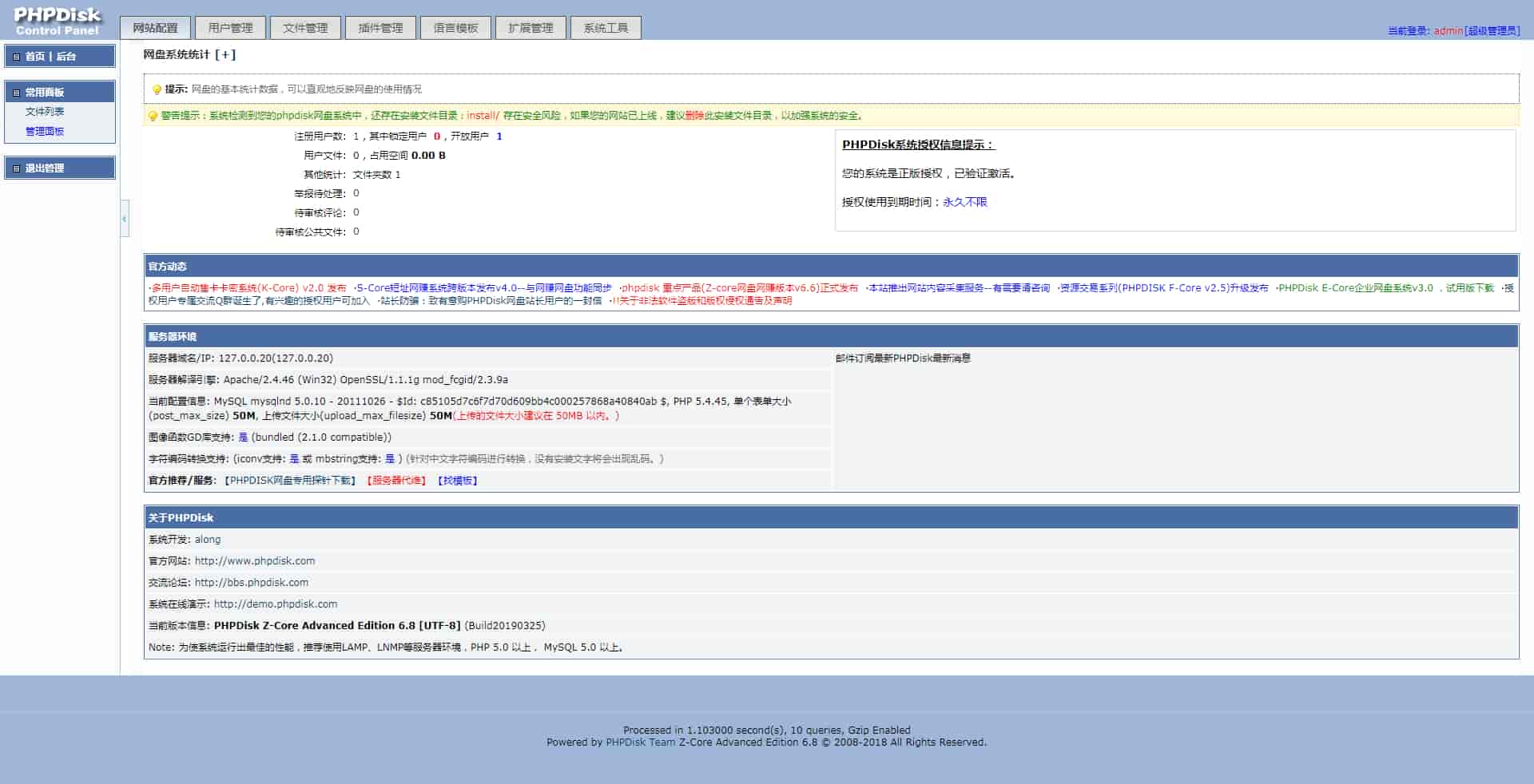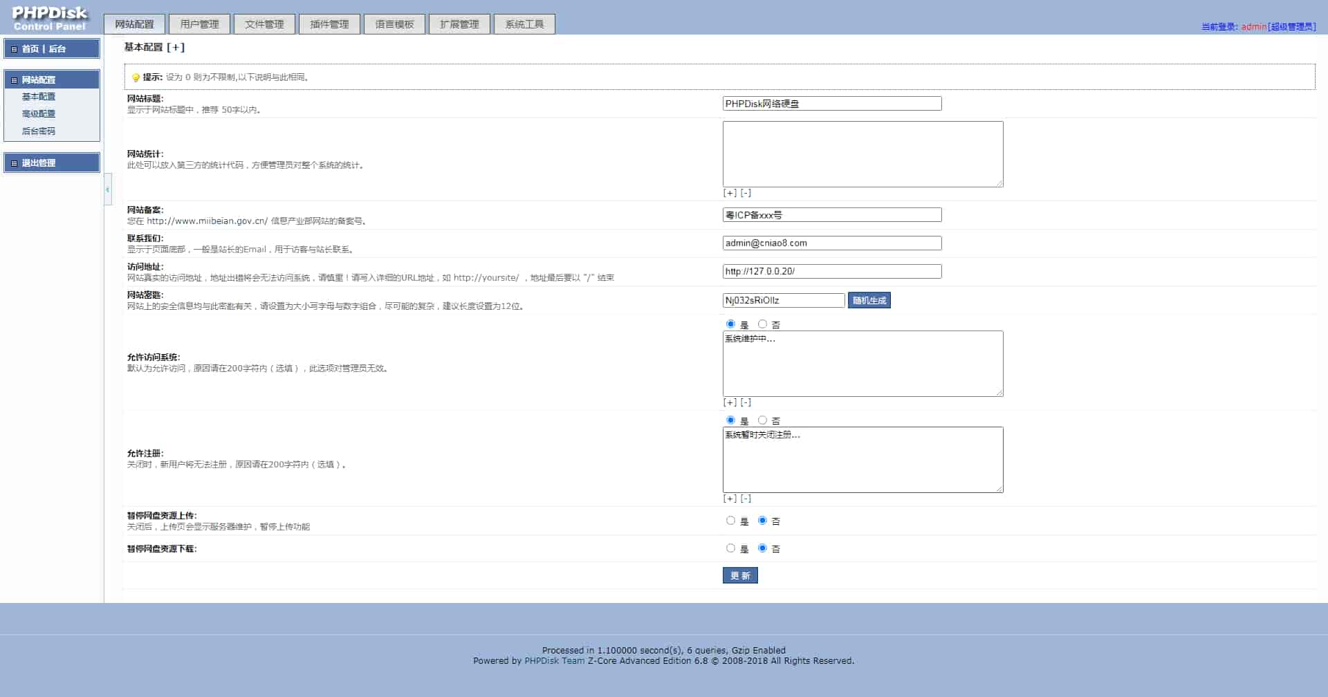 PHPDISK网盘系统[简称:PHPDISK],是一套采用PHP和MySQL构建的网络硬盘(文件存储管理)系统,可替代传统的FTP文件管理。友好的界面,操作的便捷深受用户的欢迎。
