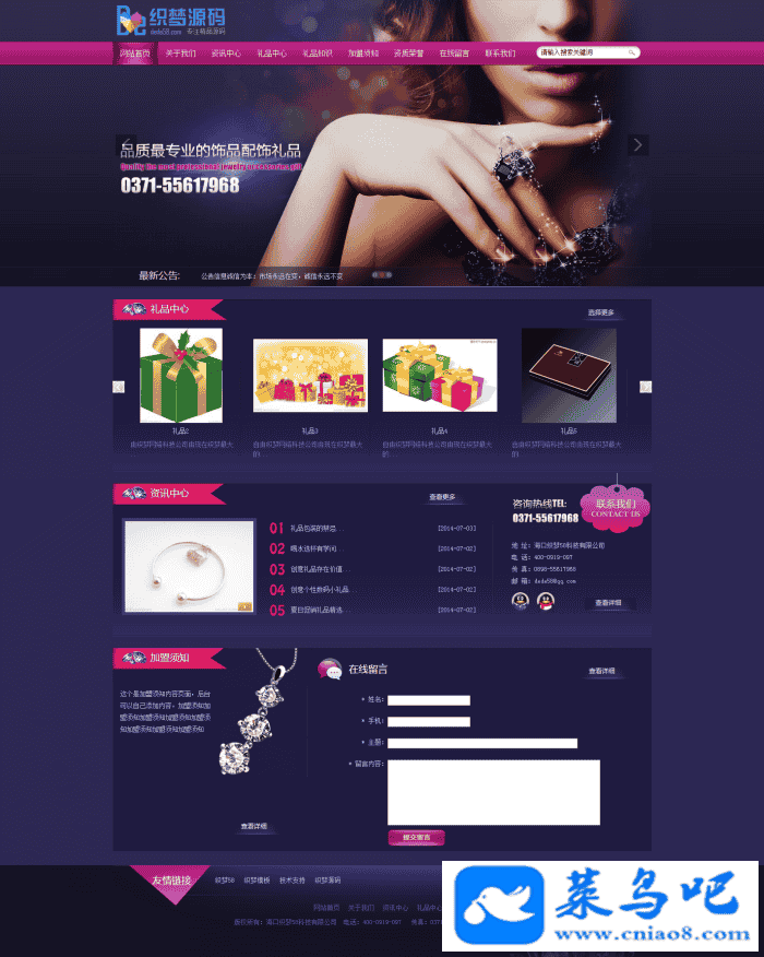 该源码适合商务礼品销售企业网站使用,网站整体采用了非常大气的紫色作为主色调,