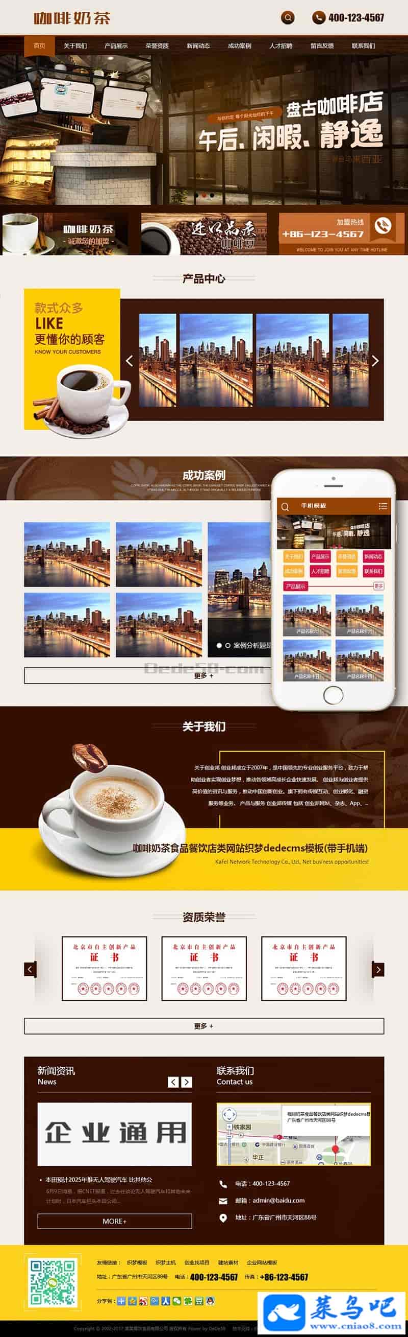 咖啡奶茶食品餐饮店类网站织梦dedecms模板(带手机端)+PC+移动端+利于SEO优化