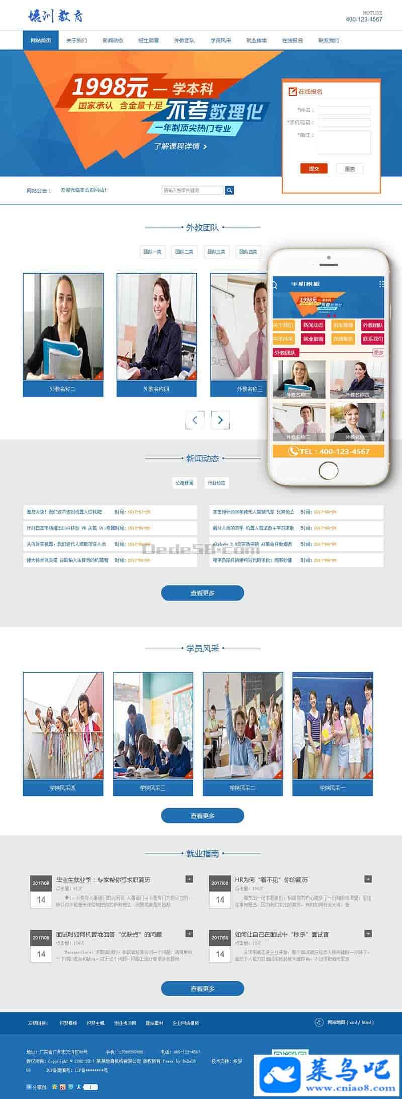 织梦最新内核开发的模板,该模板属于企业通用类、数理化培训、教育机构类企业都可使用,