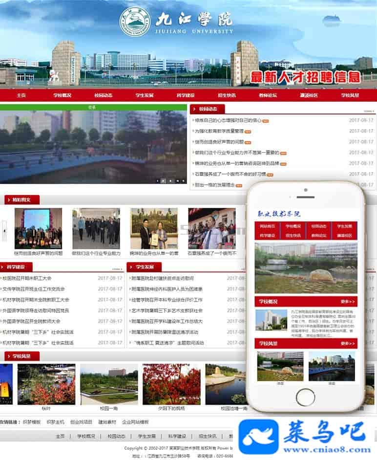 织梦最新内核开发的模板,该模板属于企业通用类、大学网站、职业学院、技术学校类企业都可使用,