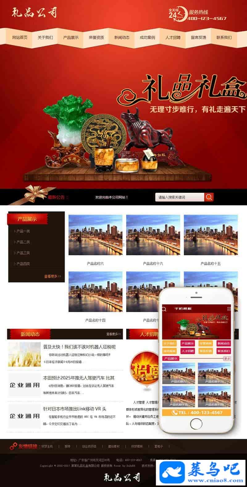 织梦最新内核开发的模板,该模板属于企业通用类、礼品、礼盒包装类企业都可使用,