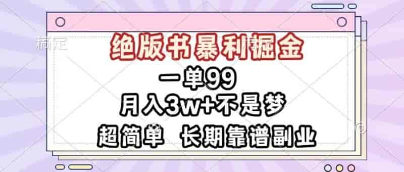 一单99,绝版书暴利掘金,超简单,月入3w+不是梦,长期靠谱副业