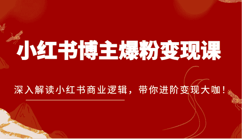 小红书博主爆粉变现课,深入解读小红书商业逻辑,带你进阶变现大咖!