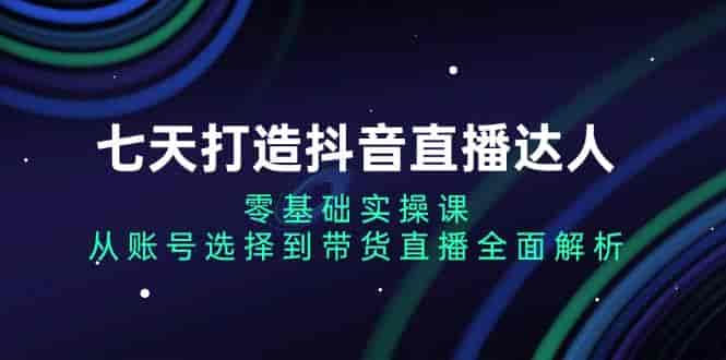 七天打造抖音直播达人:零基础实操课,从账号选择到带货直播全面解析