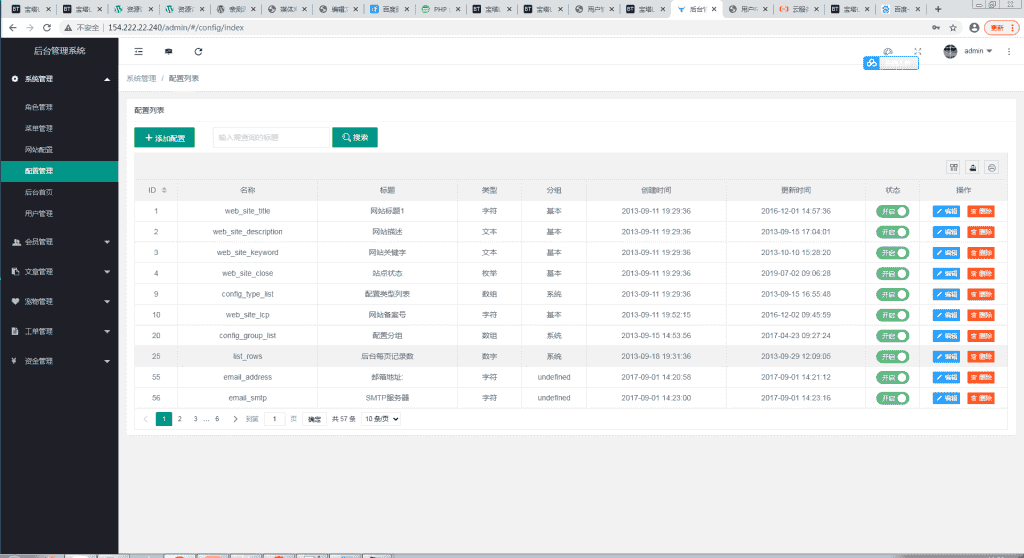 }到这里网站基本搭建完毕!登录后台试试!第四步:测试