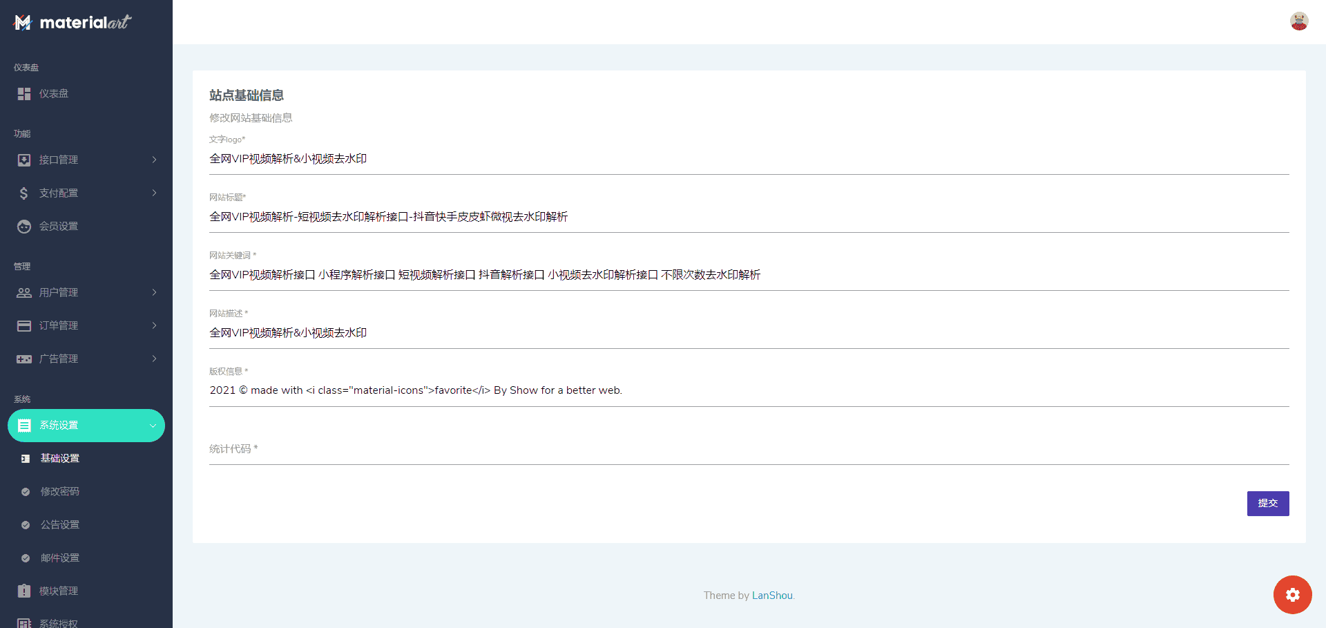 短视频去水印接口支持全网解析源码,主要是可自定义API随时更换,一次二次解析均可,完全可以对接全网各大站点。后台UI美丽,功能强大~~