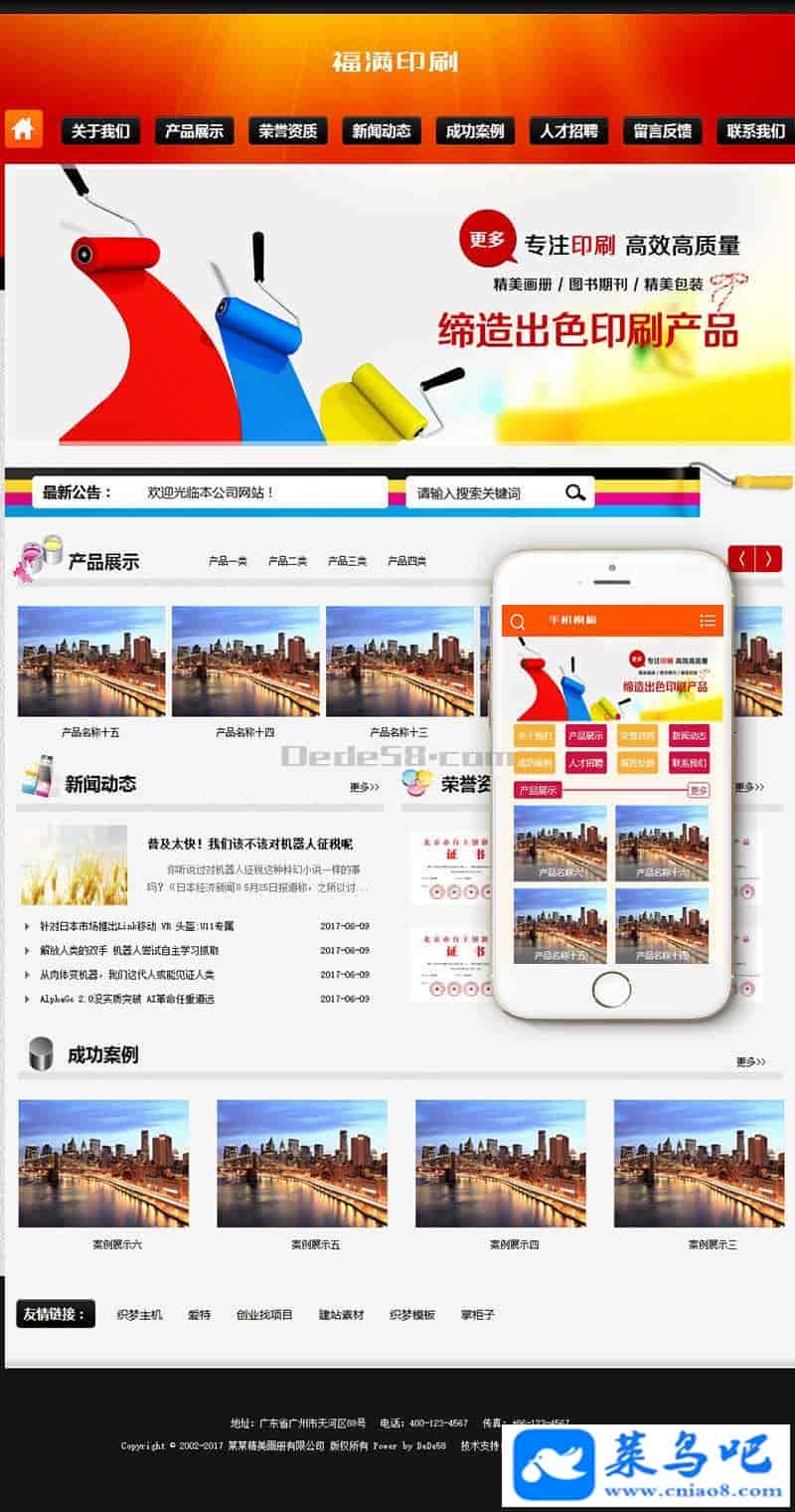印刷画册图书期刊包装类网站织梦模板(带手机端)+PC+移动端+利于SEO优化