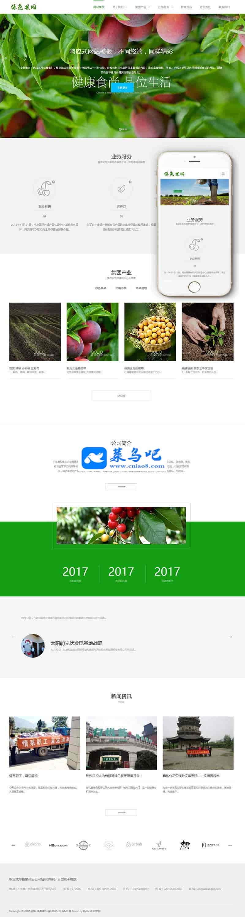 织梦最新内核开发的模板,该模板属于响应式自适应、果蔬、田园类企业使用,一款适用性很强的模板,基本可以适合各行业的企业网站!