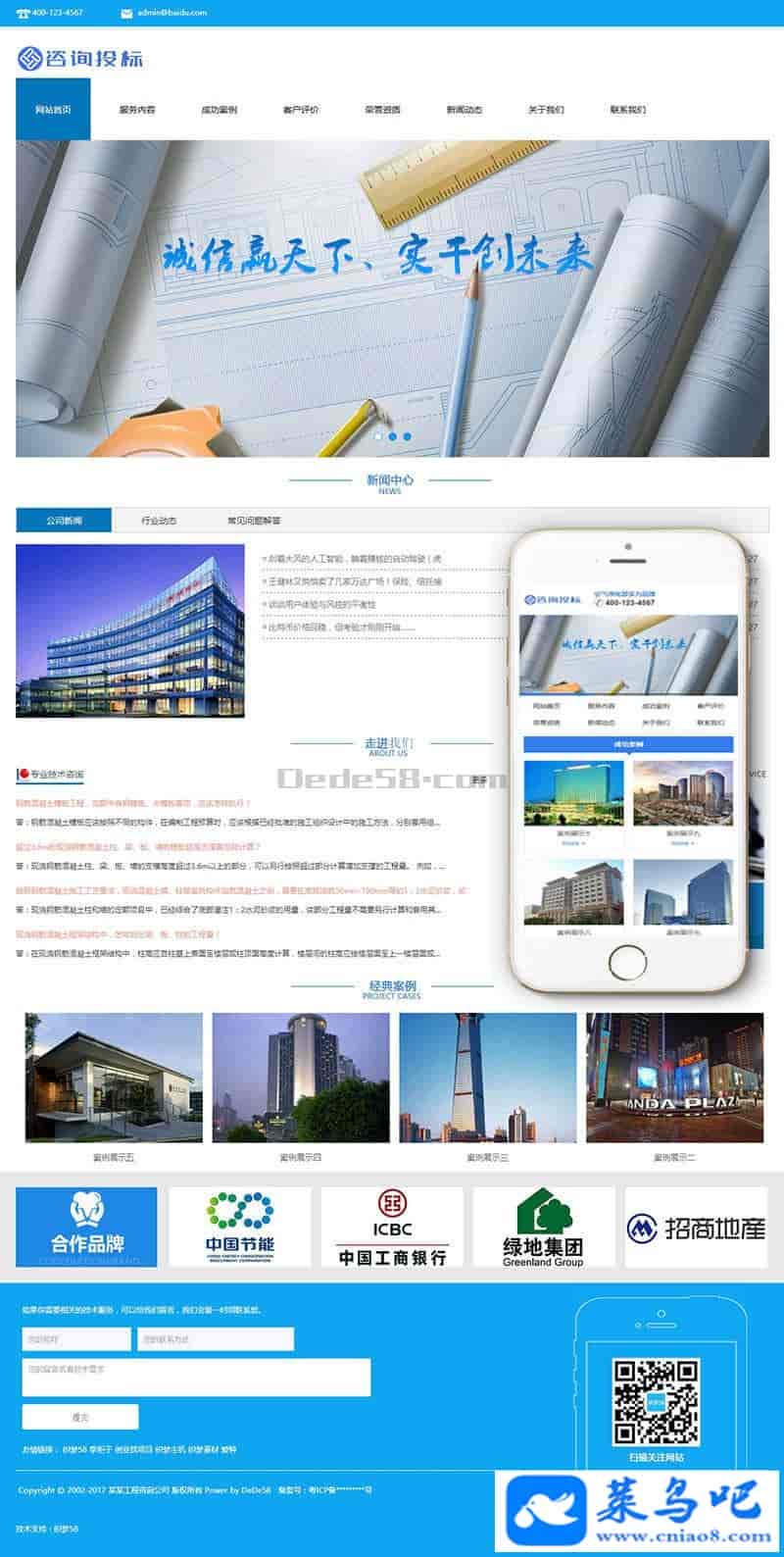 工程造价招标咨询类网站织梦模板(带手机端)+PC+wap+利于SEO优化