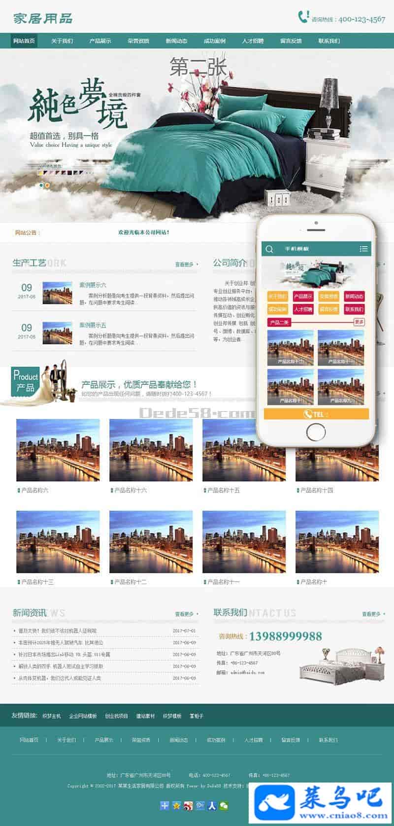 家居床上用品类网站织梦模板(带手机端)+PC+移动端+利于SEO优化