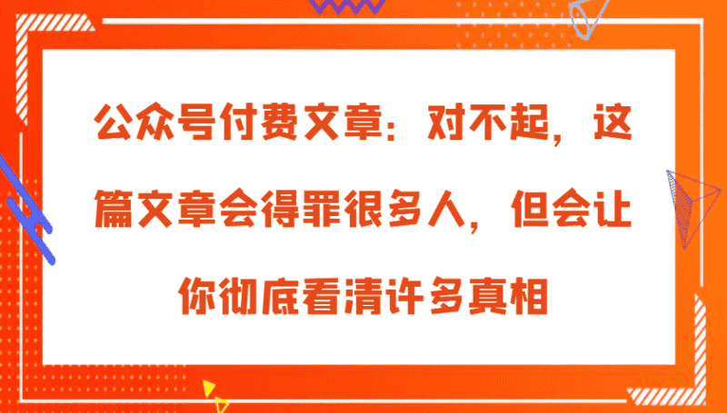 公众号付费文章:对不起,这篇文章会得罪很多人,但会让你彻底看清许多真相