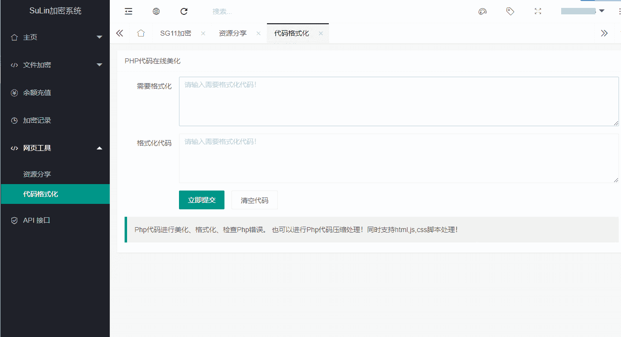 苏林加密系统是一款专门为php加密的程序,支持sg11加密、xend加密、goto加密、Leave加密、enphp加密、NoName加密