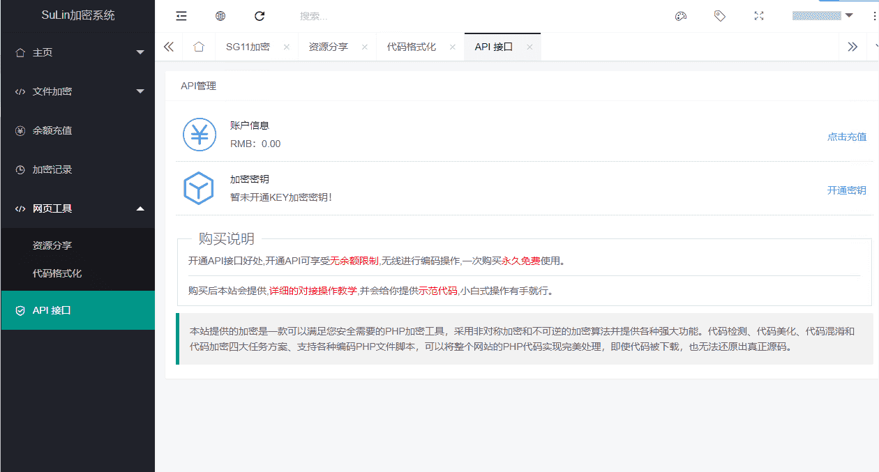 新增API接口开通新增设置开通api接口价格新增qq互联登录新增sg11支持批量加密修复注册验证失败BUG修复加密乱码报错BUG优化xend加密优化api接口提交优化sg11加密