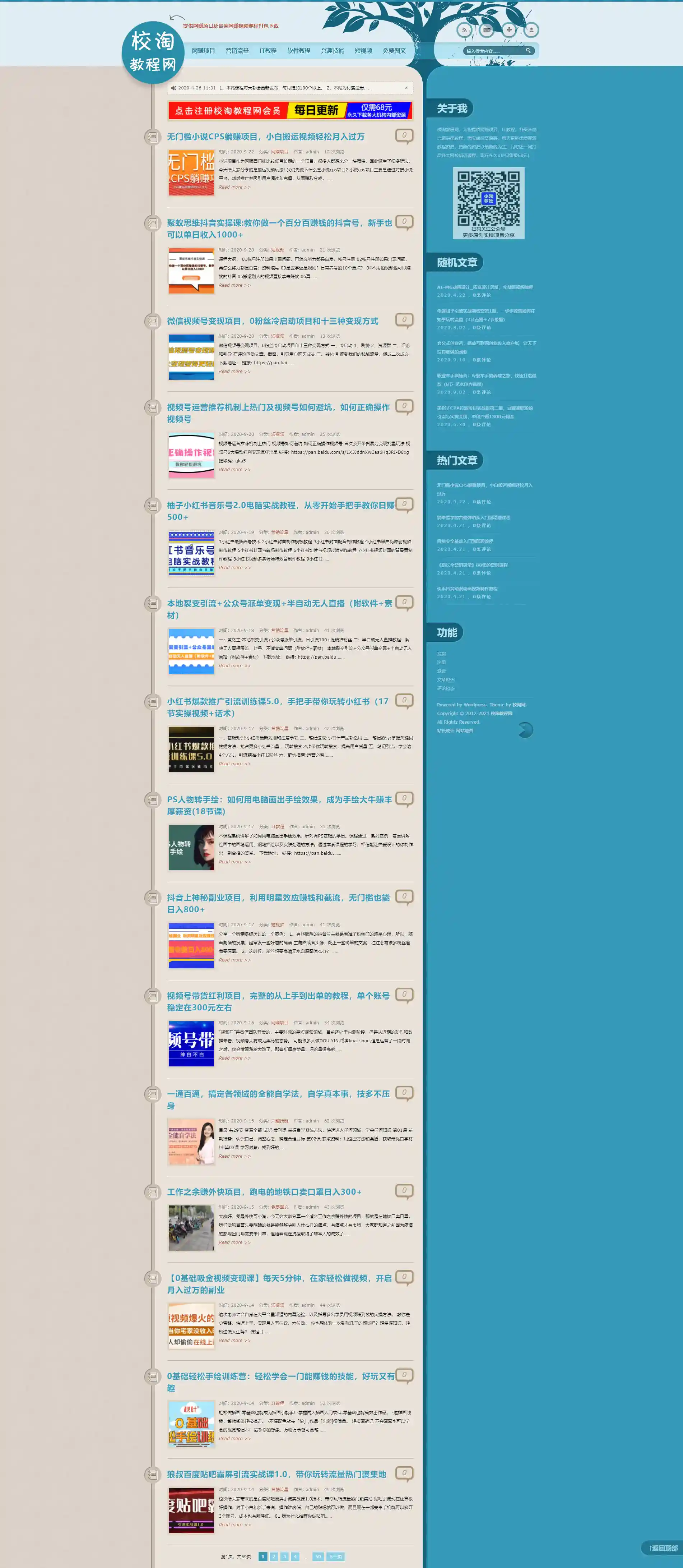 WP内核校淘教程网/行业整站打包/网赚教程分享源码/所有资源链接可用