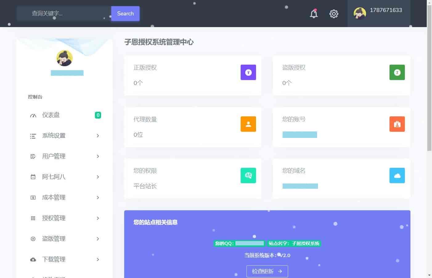 [PHP源码] 子恩域名授权系统2.0全解 自建代理/授权检测/盗版入库/授权码检测