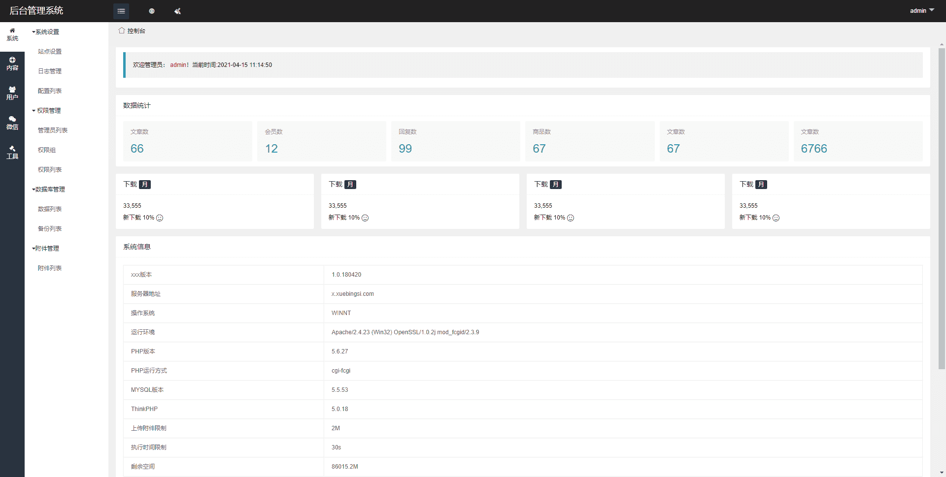 第五步:后台入口 http://您的域名/admin 默认账号密码 (超级管理员:admin 123456)