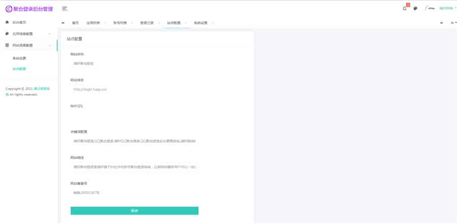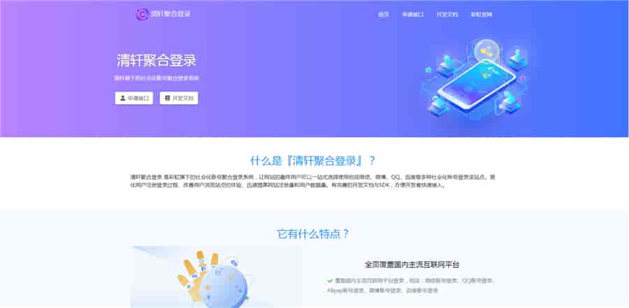 PHP清轩聚合登录平台网站源码,彩虹聚合登录系统二开,后台采用ayuiadmin改版,增加了前台界面、开发文档、SDK文件,后台增加站点配置功能。
