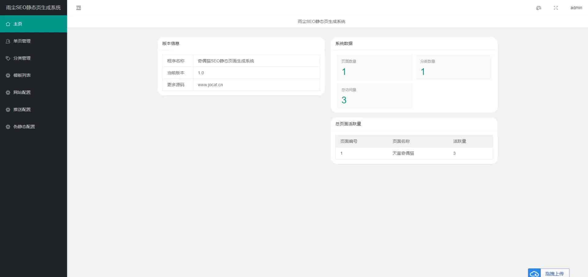态页面生成系统源码v1.3版本,支持文章采集,功能,多模板选择批量生成单页,本次更新增了百度自动推送和网站地图Sitemap功能。