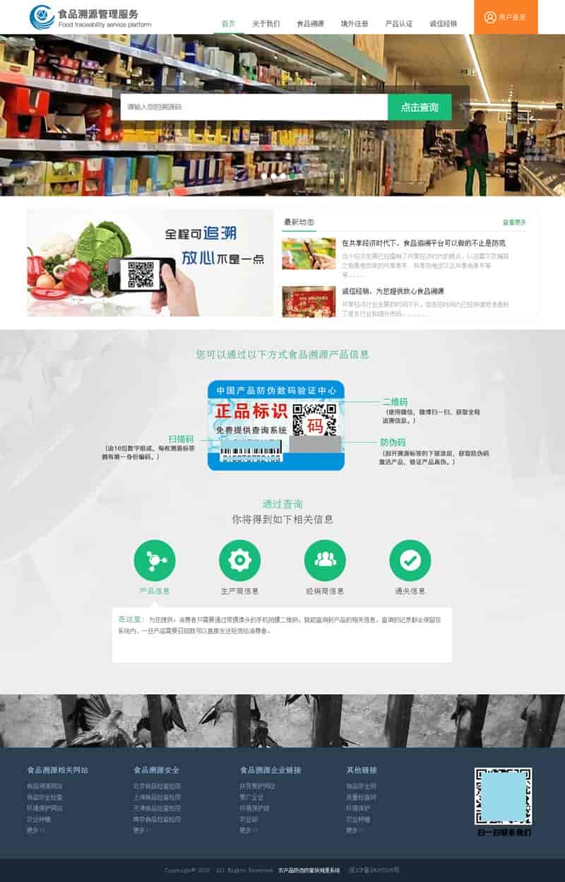 PHP农产品防伪追溯系统源码,该系统采用最简单易用的PHP+MySQL进行搭建,拥有完善的网站前后台,